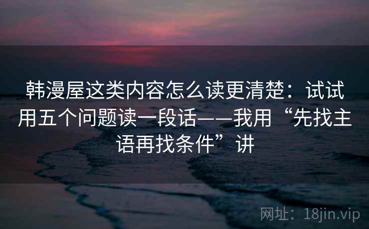 韩漫屋内容,五问读懂!告别“看了等于白看”,掌握“先找主语再找条件”的秘密